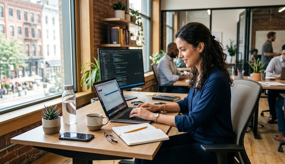Un bureau bien organisé, lumineux et ergonomique favorise la concentration. Même de petits détails, comme une plante ou un peu de lumière naturelle, peuvent influencer positivement votre productivité.