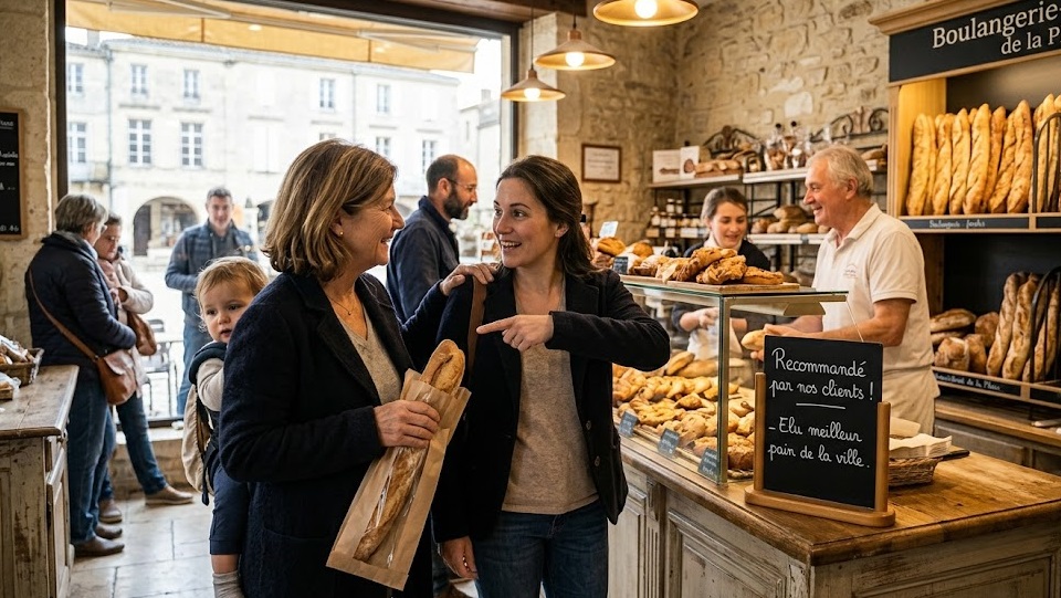 Un client satisfait d’une boulangerie, d’un coiffeur, d’un artisan ou d’un restaurant local devient immédiatement un ambassadeur.
