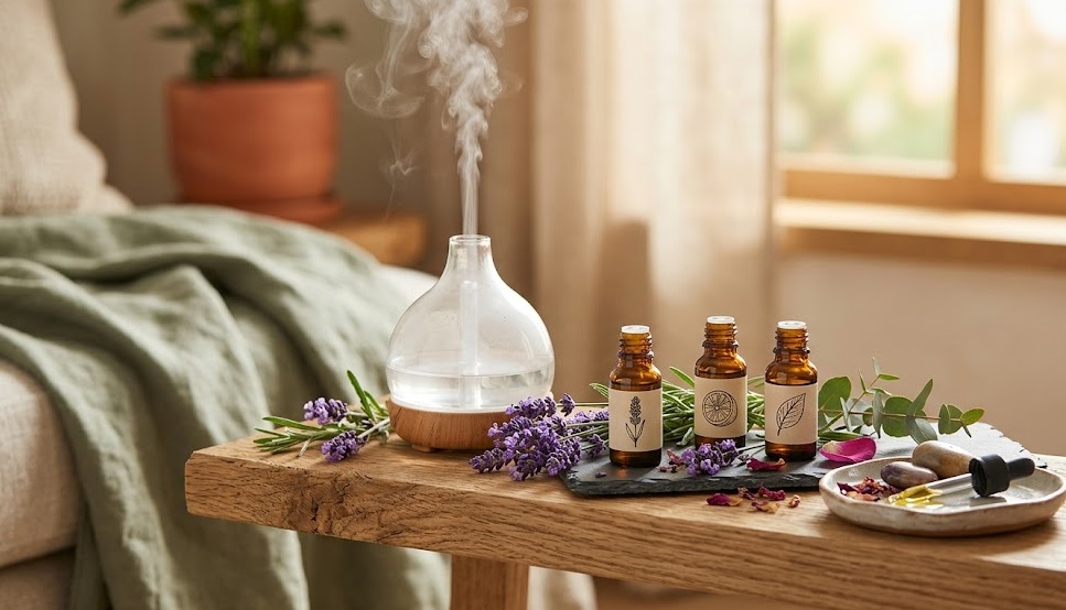 Huiles essentielles pour relaxation, sommeil et énergie au quotidien.