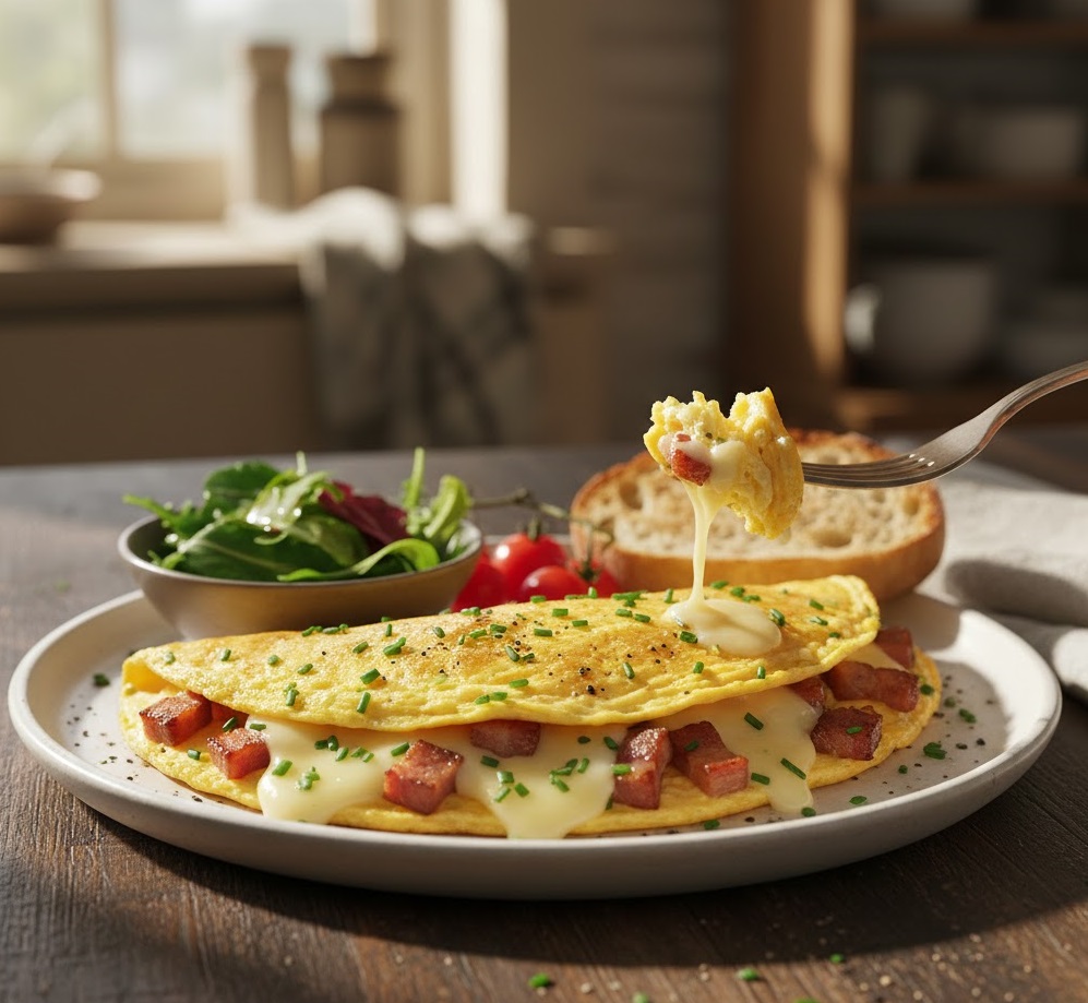 Je me souviens encore de ces soirs où l’on ouvrait le réfrigérateur en se demandant quoi préparer. Il ne restait presque rien : quelques œufs, un morceau de fromage, peut-être une tomate fatiguée. Et pourtant, en quelques minutes, un repas complet prenait forme. C’est toute la magie de l’omelette : transformer presque rien en quelque chose de délicieux.