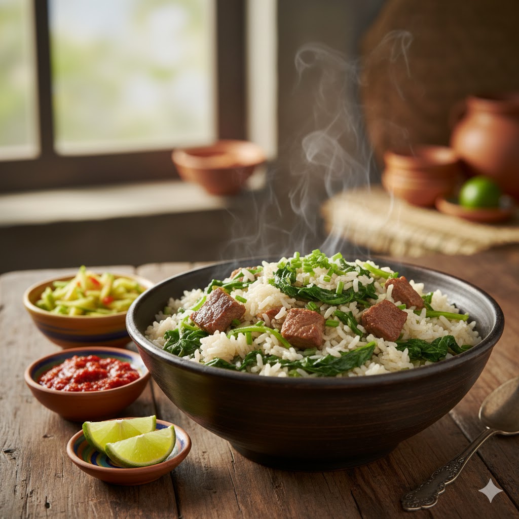 Vary amin’anana, plat simple et nutritif, incarne la cuisine quotidienne malagasy basée sur le riz et les légumes-feuilles.
